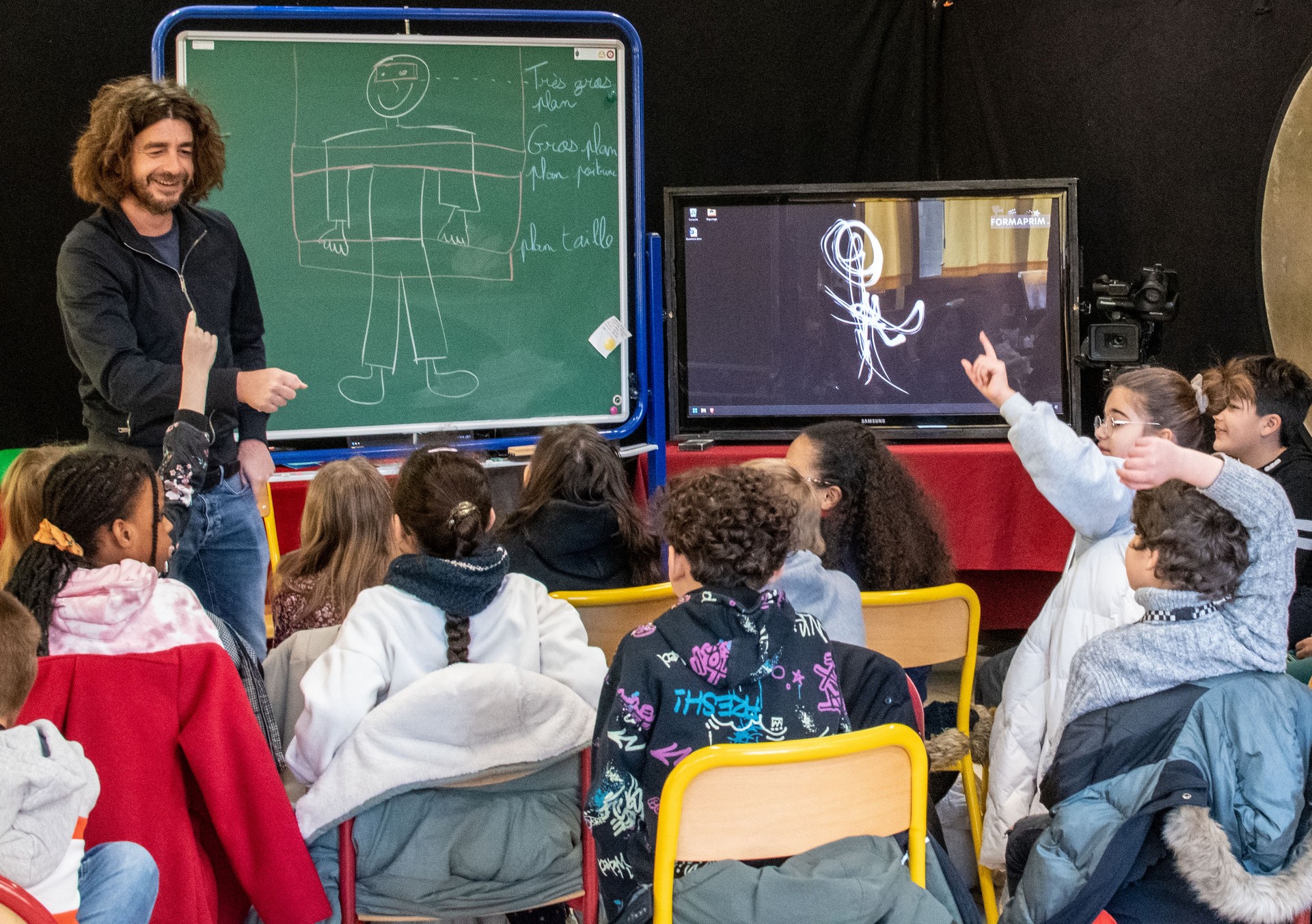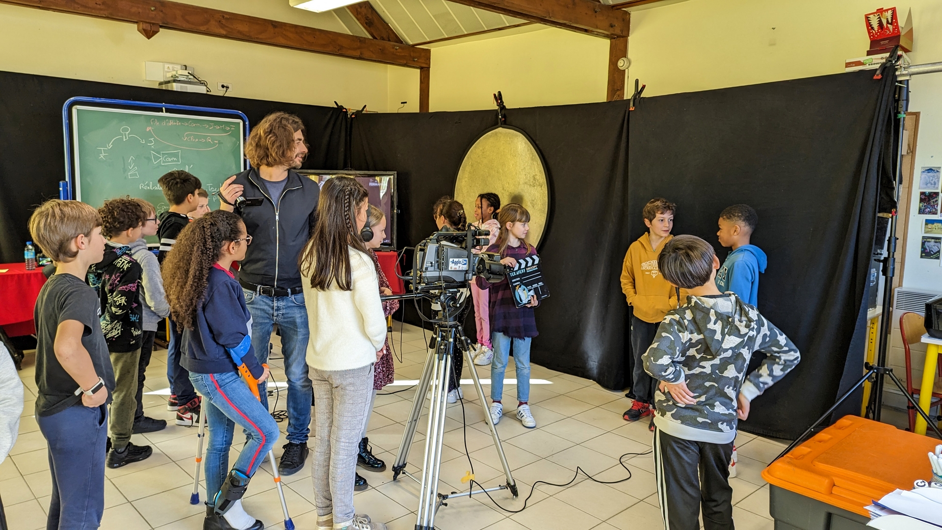 Durant le stage, un véritable studio professionnel est installé dans la salle de classe.
